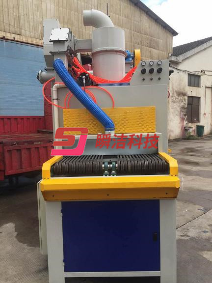 2、操作時(shí)將工件放在輸送帶上、噴砂作業(yè)自動完成,十分簡單方更。