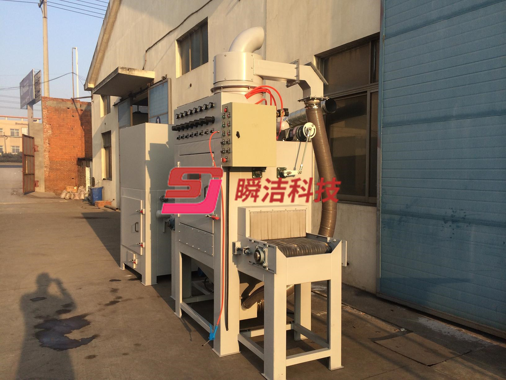2、操作時將工件放在輸送帶上、噴砂作業(yè)自動完成,十分簡單方更。