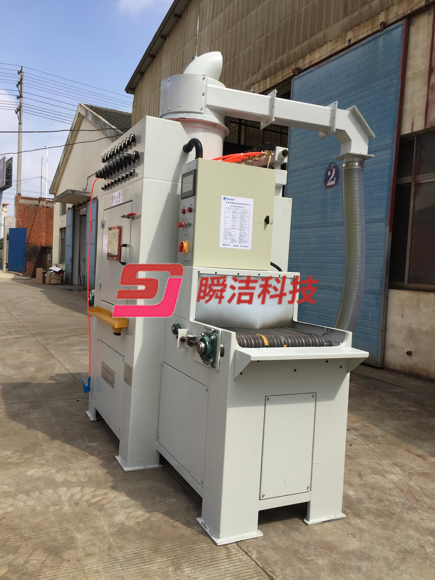 2、操作時將工件放在輸送帶上、噴砂作業自動完成,十分簡單方更。