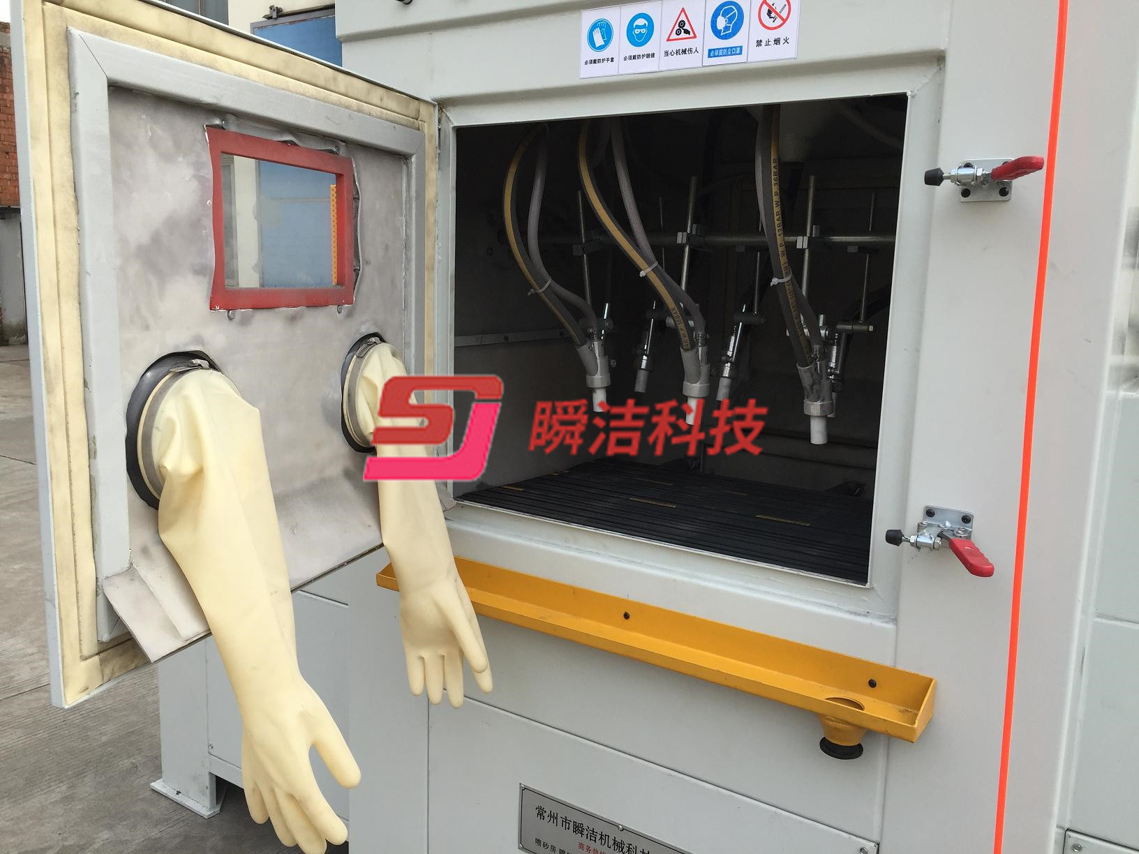 4、噴槍與噴槍架具,可依工件尺寸擺放,并可做720度旋轉(zhuǎn),以便各種工件噴砂加工。