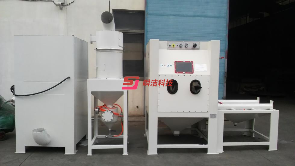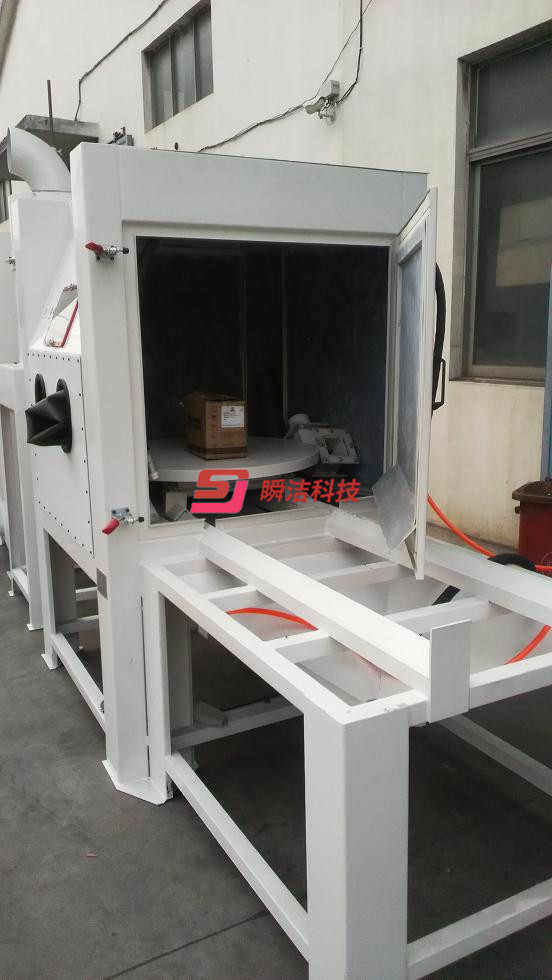 3、配備活動臺車,和轉盤,操作時將工件放在轉盤上,然后推入機內即可噴砂作業,操作簡單省力。