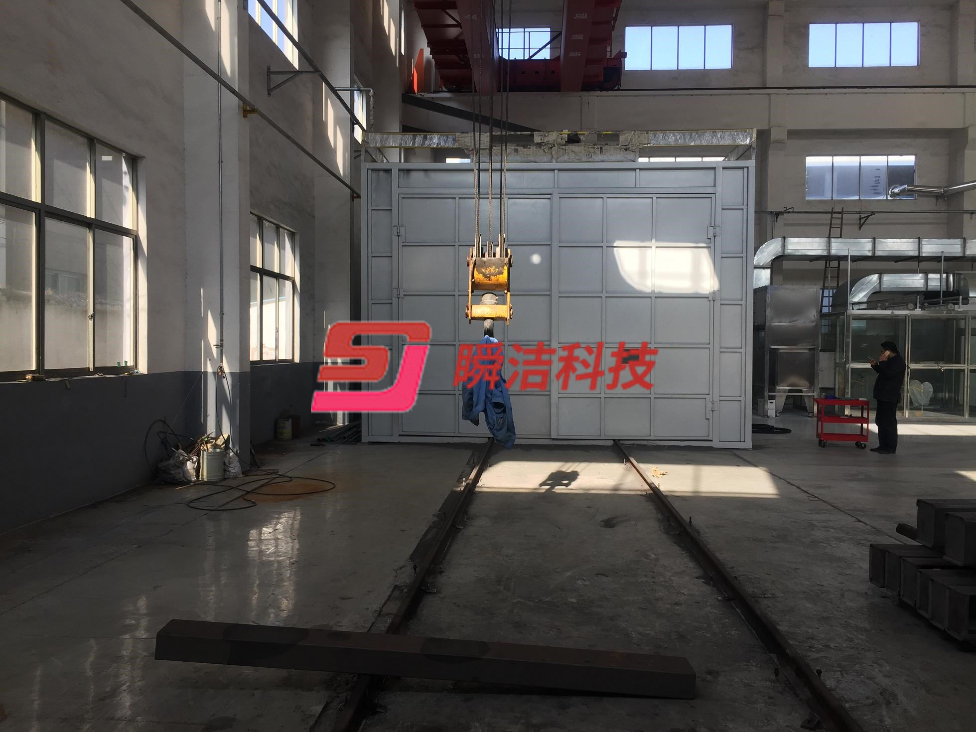 8、噴砂(丸)室內(nèi)氣流自上而下循環(huán)運動,光照明亮、舒適,能見度高。