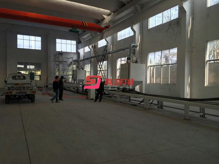 小口徑的鋼管使用內(nèi)壁噴丸機(jī),鋼管內(nèi)壁噴丸處理線,主要包括移動臺車,砂斗,噴砂罐,噴槍,噴槍承載車,鋼管承載系統(tǒng),底部彈丸輸送皮帶機(jī),斗提機(jī),維修平臺,分離器,除塵系統(tǒng),支架,氣動系統(tǒng),壓縮空氣系統(tǒng),電控系統(tǒng)。